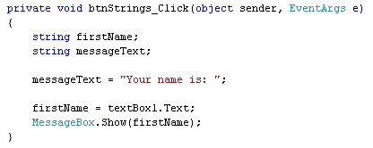 MessageBox.Show( "Your name is: " + firstName);