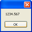 Another thing to be careful of when using float variables is rounding up or down. As an example, change the number from 0.42F to 1234.567F. Now run your programme, and click your float button. The message box will be this: