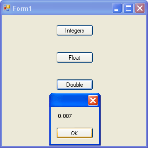 Run your programme and click your double button. The message box correctly displays the number. Add another number on the end, though, and C# will again round up or down. The moral is, if you want accuracy, careful of rounding!